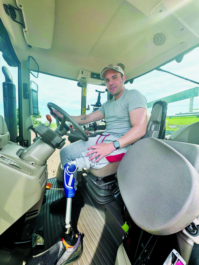Abandonar o campo jamais passou pela cabeça de Angelo Sarmento Klein, 34 anos. Morador da pequena cidade de Almirante Tamandaré do Sul (RS), ele dirige o trator John Deere 6210 M com desenvoltura nas plantações de soja, trigo e aveia na fazenda da família, apesar da prótese da perna esquerda. Klein sofreu uma tragédia pessoal aos 5 anos de idade: “Estava no carro do meu tio em um passeio nas Ruínas de São Miguel das Missões, quando ele foi pegar um revólver calibre 12 dentro do porta-luvas. A arma disparou acidentalmente e atingiu minha perna.”.